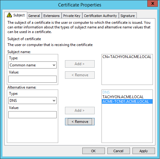 Subject Name: Allow information to be supplied in the certificate request, rather than being built from Active Directory information.