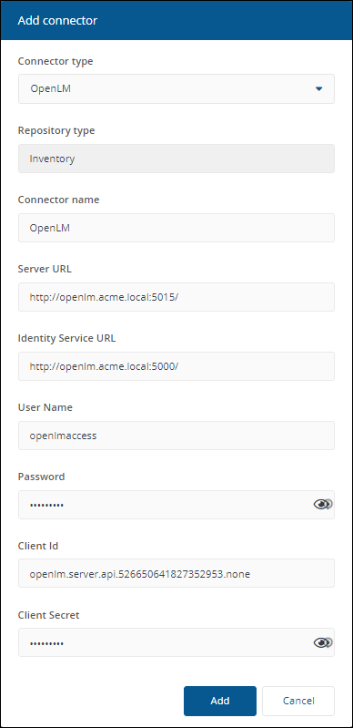 In the Add Connector pop-up window, select OpenLM as the connector type.