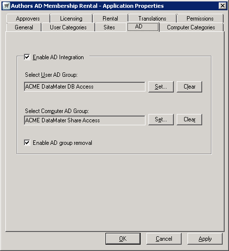 You will then be able to configure AD group membership rental in the same way as you would for any other type of rental application, see Application rental.