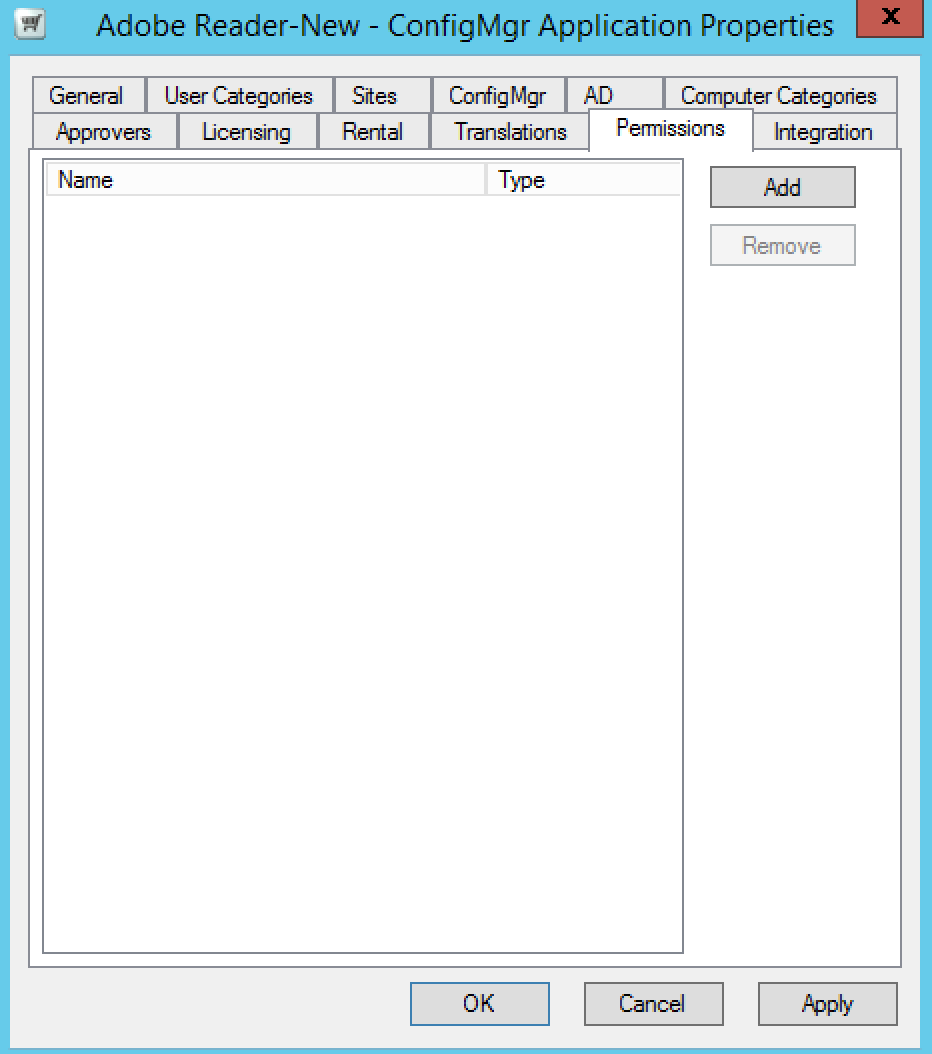The permissions is used to manage permissions for users or groups so that they can see the application in the Shopping Web portal. To grant permissions to users or groups, click Add.