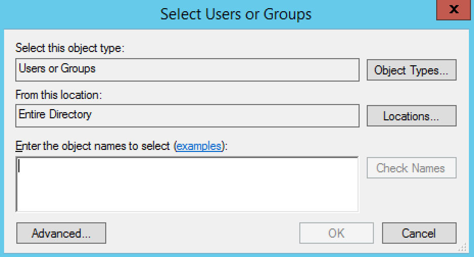 1. In the Select Users or Group dialog, enter the user or group you want to grant permission to.