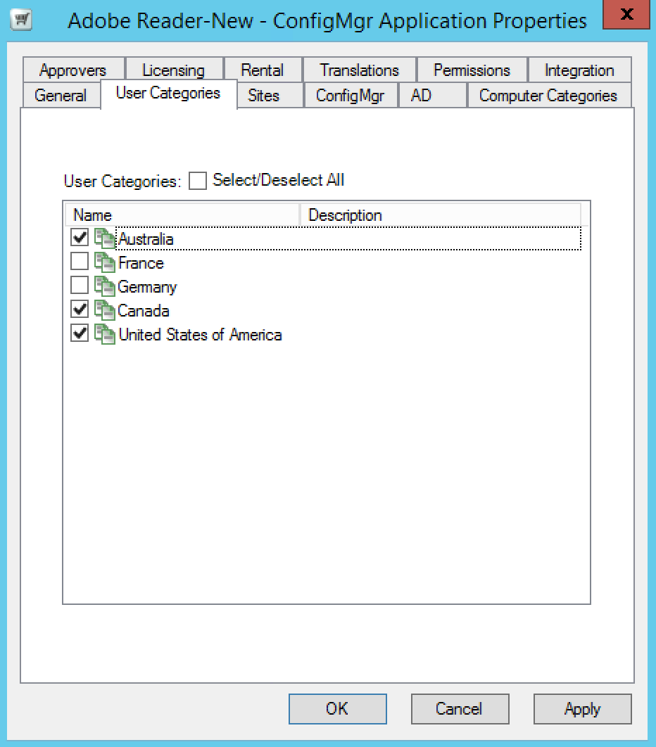 • Mandatory – determines if Configuration Manager deployment that delivers the application to the user is mandatory. This property is not available for non-Cofiguation Manager applications.