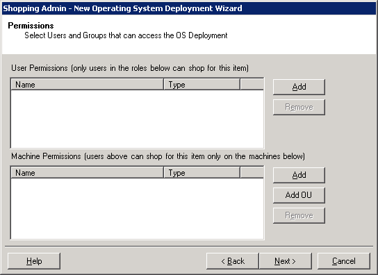 On the Permissions screen, set the permissions for the users and machines that can request the OSD Application.