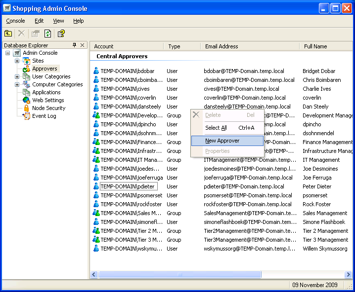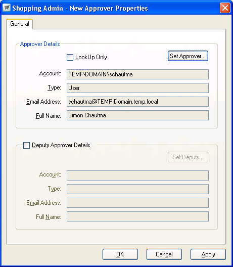 Sometimes though, you may also want to set deputy approvers for the managers so that they can take over when they are away. One way to do this is to create a shopping approver for each AD manager you want to handle and add a deputy approver. In practice though, it is likely that you do not want all the managers appearing in the list of available approvers when defining an application's approval.