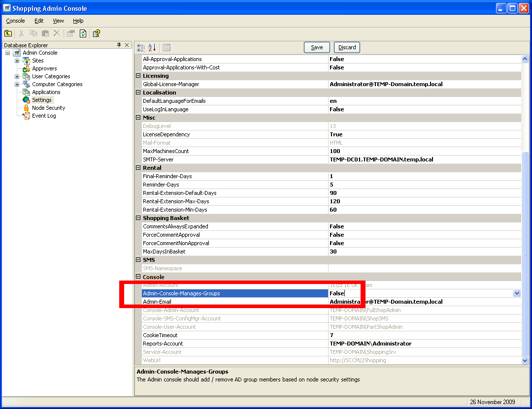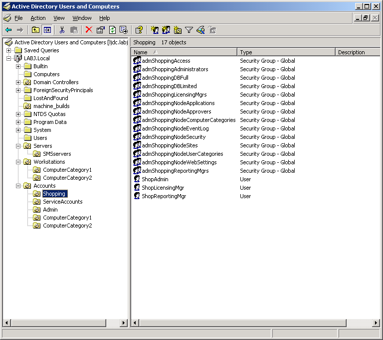 From this point on membership of the eight AD Shopping Admin Console groups will govern both the visibility of the Admin Console and the associated access to the Shopping and Configuration Manager databases.