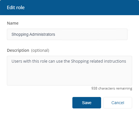 For the Description, use something like Users with this role can use the Shopping related instructions