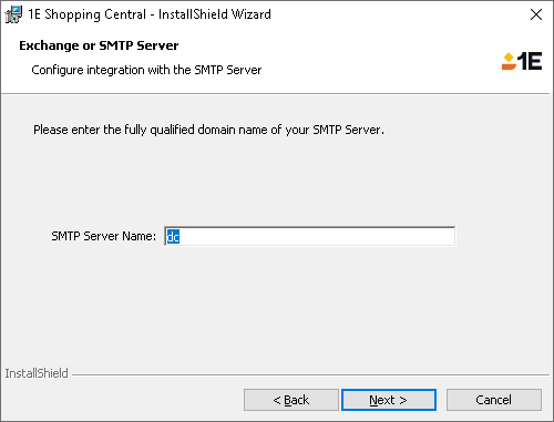 Enter the fully qualified domain name for your Exchange or SMTP server. The SMTP server name defaults to localhost for locally defined SMTP servers.