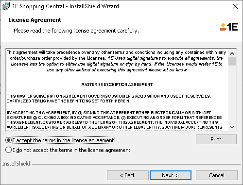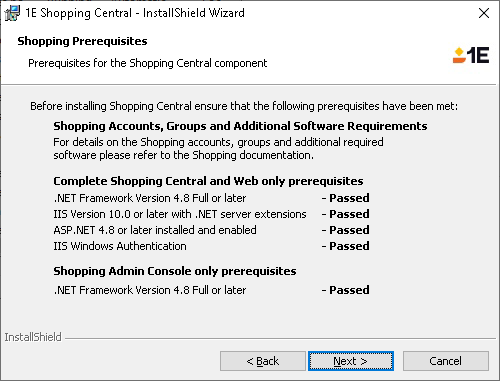 1E: To use Shopping with 1E, you should follow the instructions on 1E Platform integration before starting the installation of Shopping Central.