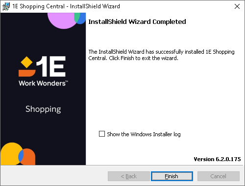 When the installer completes, optionally check Show the Windows Installer log, then click Finish to close the installer.
