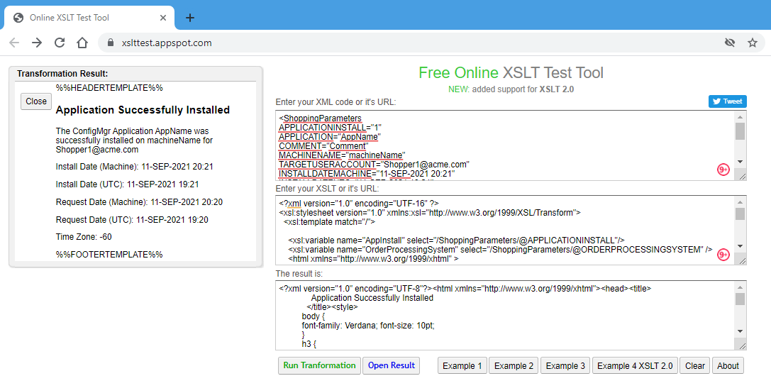 The following example is for Mail-InstalledApp-Shopper.xslt: