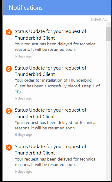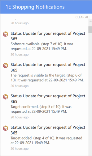 Users can click on the notification area icon and then see the status history. They can also clear all notifications.![]()