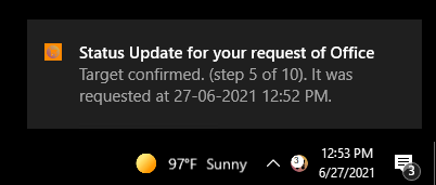 As the requested is processed, Windows action center notifications can be displayed, as illustrated here.