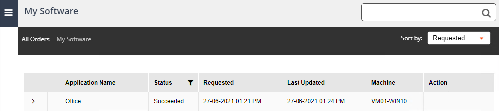 Users also have the option of clicking on the ">" icon to expand the status of any request. This is a simplified but complete view of the request status, showing history and the steps taken. If some steps have not yet happened, they will have grey icons, as in this example. If any of the steps fail, the icon will be red.