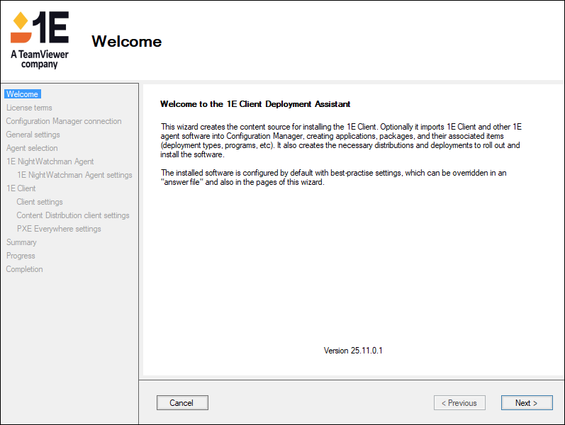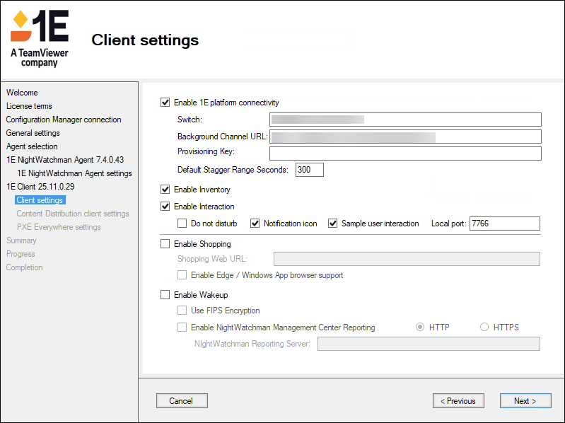 Add a Provisioning key to use this with your 1E Client deployment. Refer to Enhanced Settings |