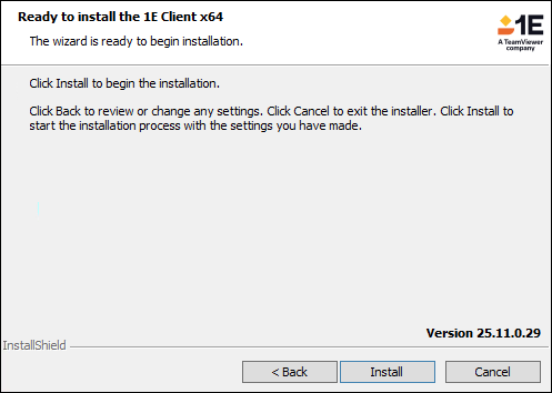 For more information about configuring 1E Client properties during and after installation, refer to 1E Client configuration settings and installer properties.