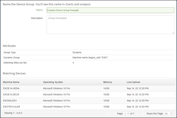 Enter a name for the Device Group. On this page, you'll also see a list of the attributes being used, as well as a list of the devices that met the criteria.