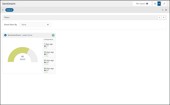 Clicking on the Sentiment - Latest Score tile drills down to the Sentiment page, here the EUC manager can drill down again by clicking on the same tile.