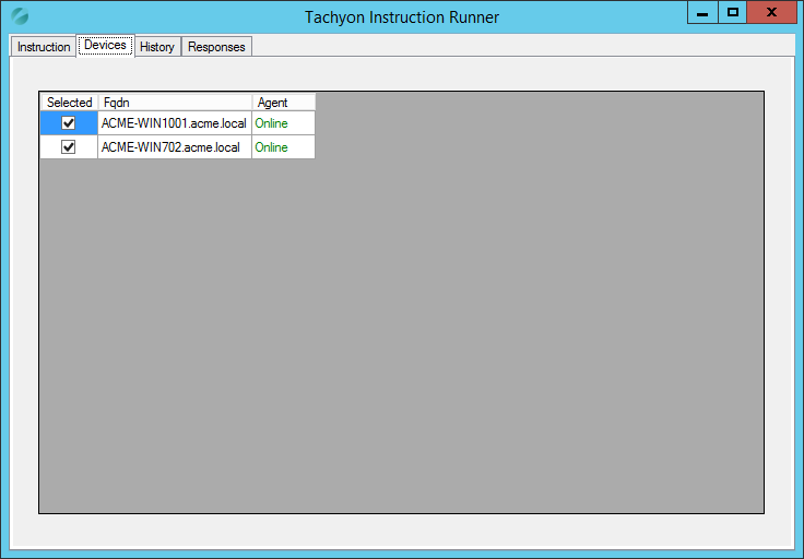 The Devices tab shows the devices contained in the selected Configuration Manager Device Collection. In our example, as shown in the picture opposite, it shows the two devices in the Finance devices collection. You can further reduce the devices that the question will be run on by unchecking the checkbox at the beginning of the row with the device name you want to exclude.