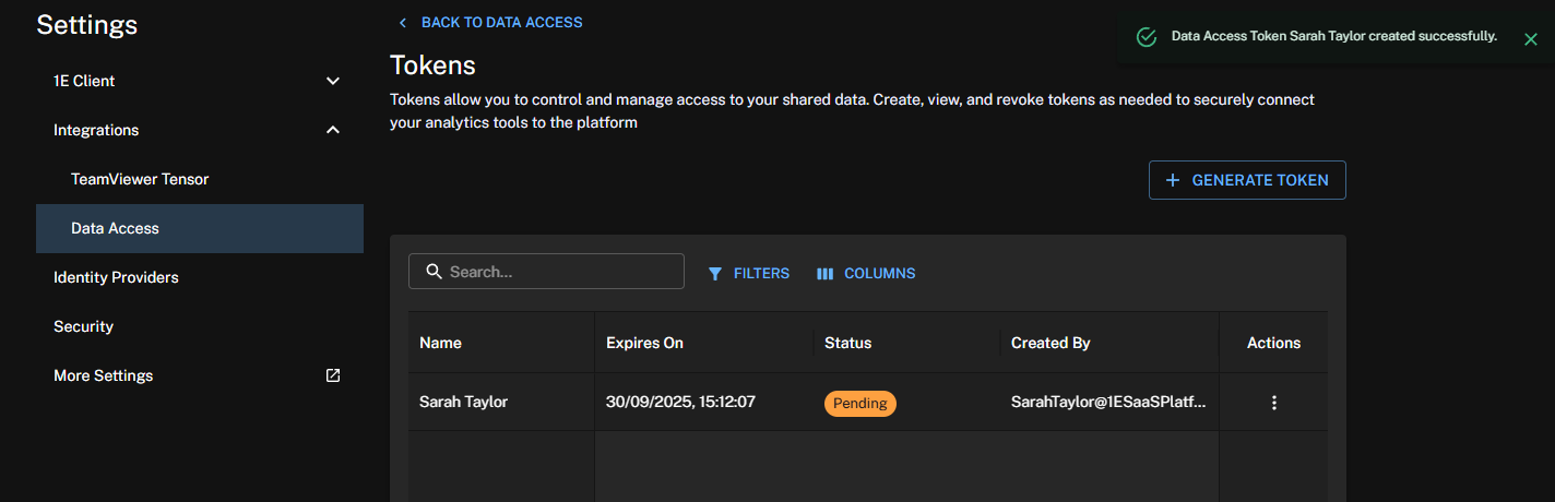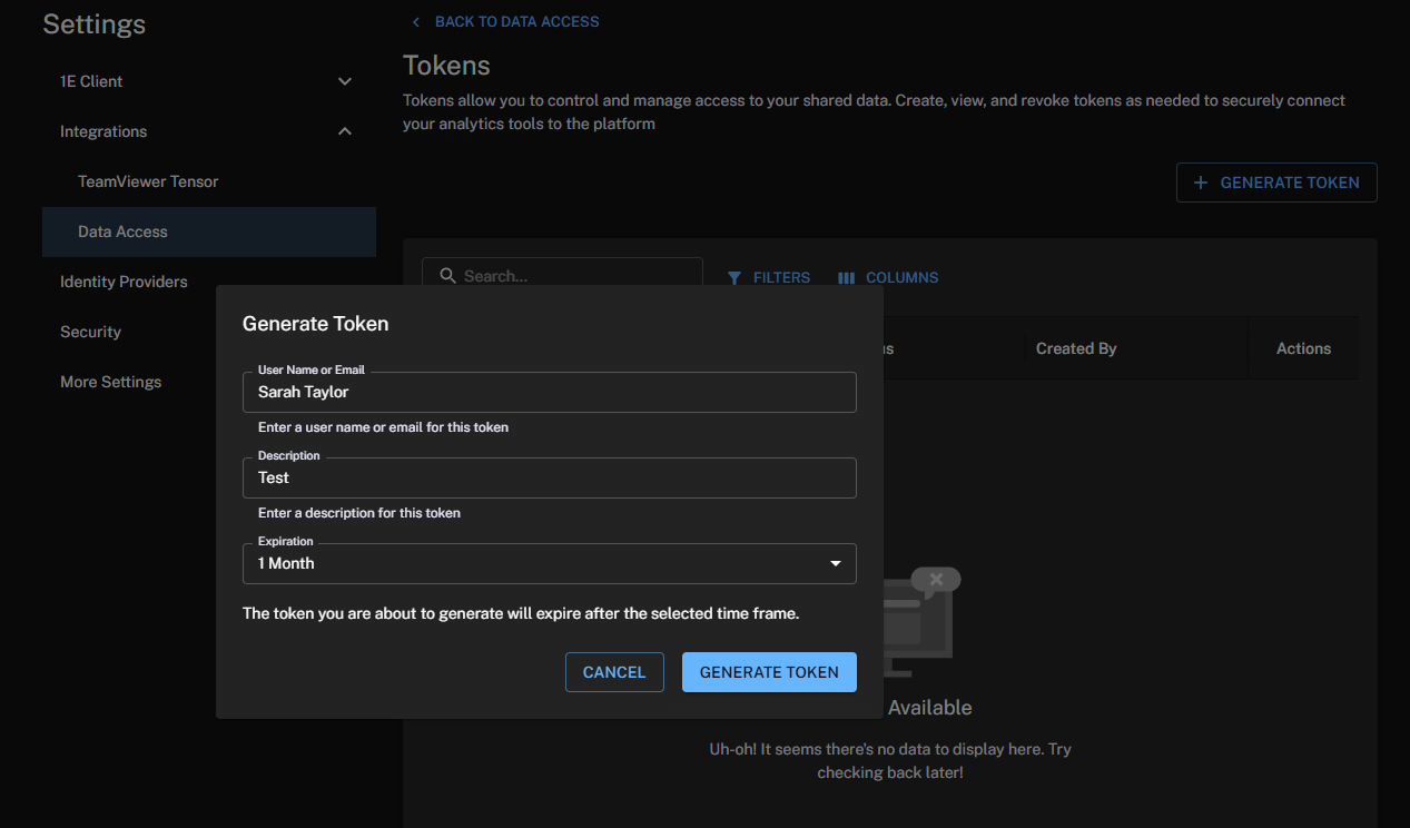 Once you have access to the Enterprise+ tier and have enabled Data Access using the 1E PowerShell Toolkit, you can use the feature in the Platform UI.