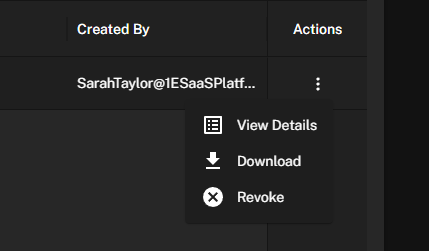 To use the token, click Download under the Actions column. This opens a new tab in your browser and changes the token status to Active.