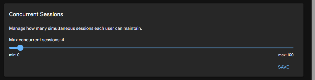 This setting displays the total number of simultaneous sessions each user can maintain. The maximum value is set by an admin to control the concurrent sessions.