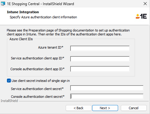 If you want to integrate Shopping with Intune, add the following command-lines (substitute the [parameters>] for your environment):
